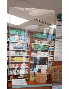 Placa universal de protecção anti-riscos para veículos a instalar em veículos de transporte público, tais como táxis, ambulâncias, VTC. A placa de protecção separa o compartimento dos passageiros entre o condutor e o cliente, a fim de limitar os riscos de contaminação, evitando a projecção de germes. Tem uma abertura de 25 cmx10 cm para facilitar o...